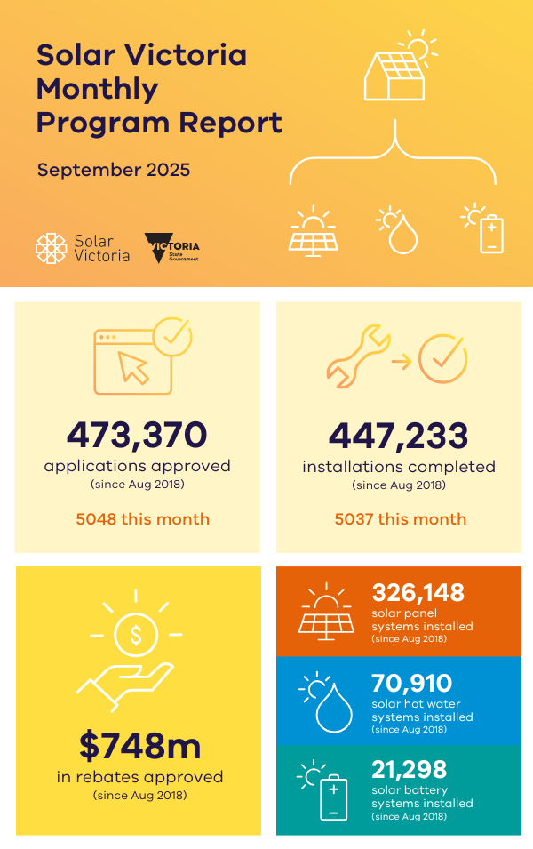 © State of Victoria, Solar Victoria, Department of Energy, Environment and Climate Action (DEECA) 2025. This work is licensed under a Creative Commons Attribution (CC-BY 4.0) licence. You are free to re-use the work under that licence, on the condition that you credit the State of Victoria (Solar Victoria) as author, indicate if changes were made and comply with the other licence terms.